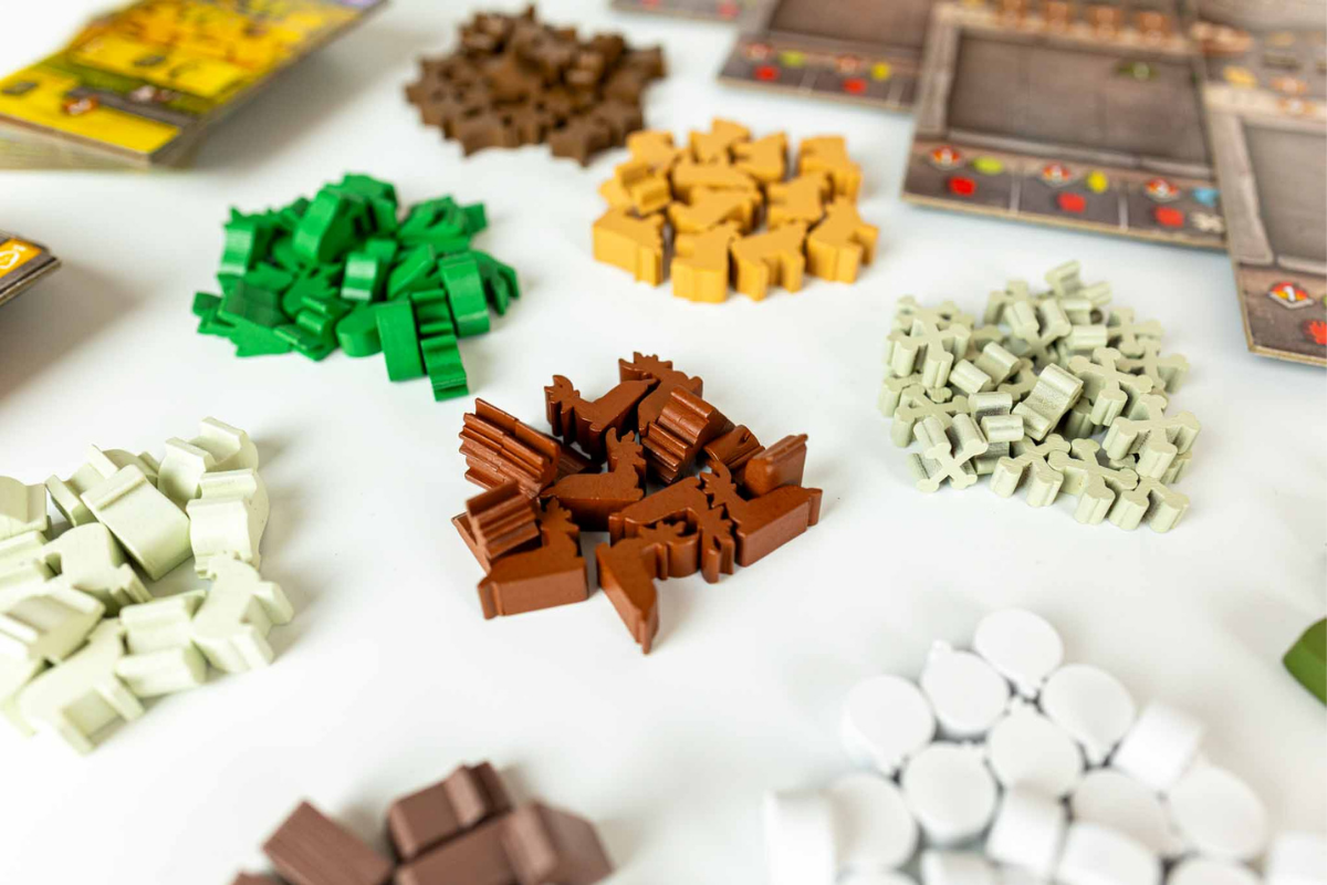 - ponad 400 Drewnianych Znaczników (Wooden Tokens)