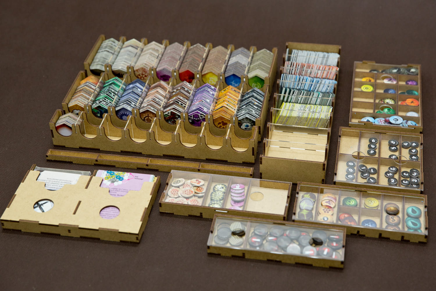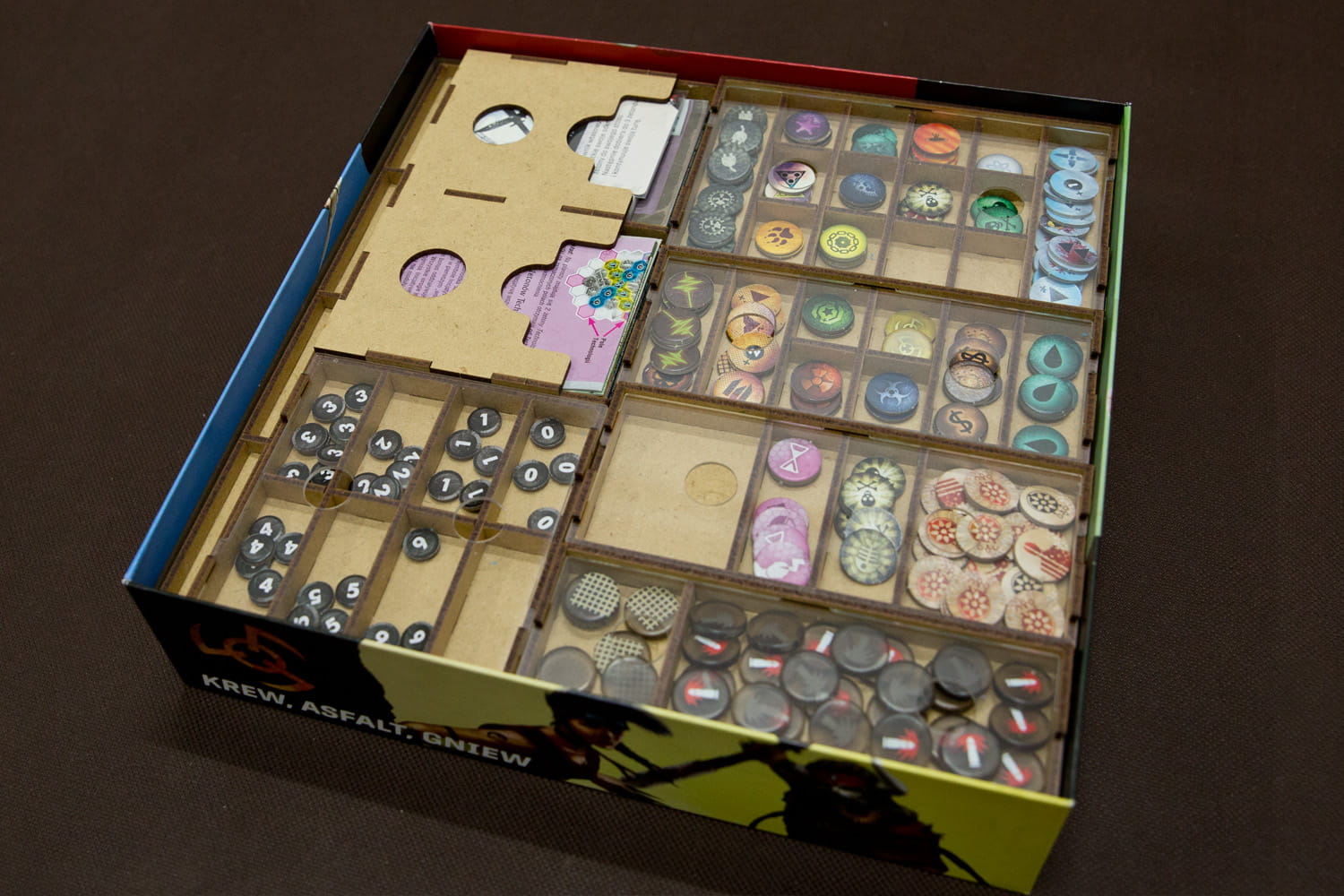 Insert posiada pojemność 26 armii z posegregowanymi żetonami oraz miejsce na dodatkowe promocyjne hexy.